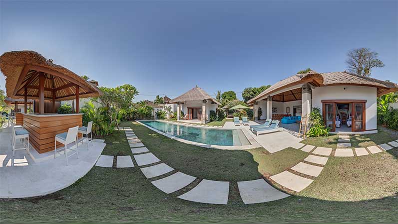 Virtual Tour created for Villa Alore in Seminyak Bali for the Villa Bugis Villa Group. This villa is actually two separate villas which are combined. The virtual tour shows this in a way the photography cannot. It has 6 bedrooms in the two mirrored villas. It is a 10 minute walk to the beach and close to restaurants and shopping.