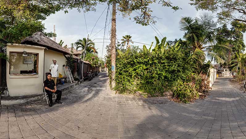 I was in Bali shooting Virtual Tours for the Villa Bugis Villa Group and one of the owners mentioned that the beach is very close to their villa but they have no way of showing how beautiful the walk is to get to Seminyak Beach. I suggested that I could create a virtual tour of this beach walk to show their potential clients exactly how it is. So I set off to document this walk using 360 photographs in a virtual tour for them.